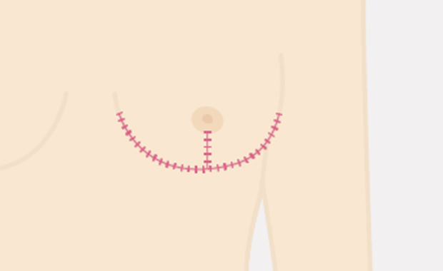 乳腺や脂肪組織、余分な皮膚を切除し、乳房全体のボリュームを大きく減らす方法です。バストが非常に大きい場合や、しっかりとサイズダウンしたい場合に適しています。 大きな縮小効果が期待できる一方で、切開を伴うため術後には傷跡が残ります。また、この方法では乳輪・乳頭を温存することができないため、乳輪や乳頭の形を残したい場合には他の術式を検討する必要があります。