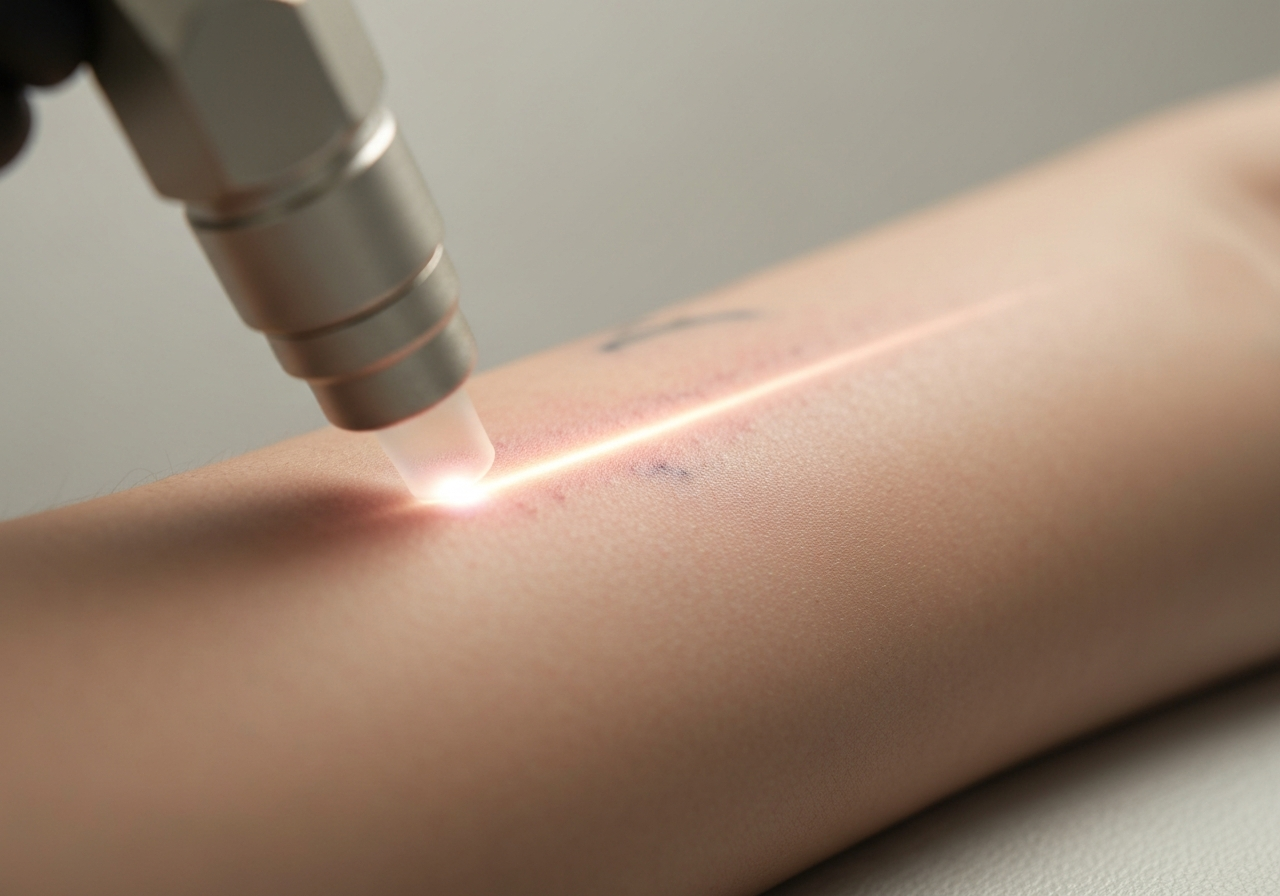 レーザー治療は、タトゥー除去の主流となっている方法です。この治療における痛みは、主にレーザーがタトゥーの色素に反応し、熱エネルギーを発生させることで生じます。具体的には、レーザーの光が皮膚内部のインクに吸収されると、インクの粒子が瞬間的に熱を帯びて破裂します。この熱と破裂の衝撃が、神経を刺激して痛みとして感じられるのです。